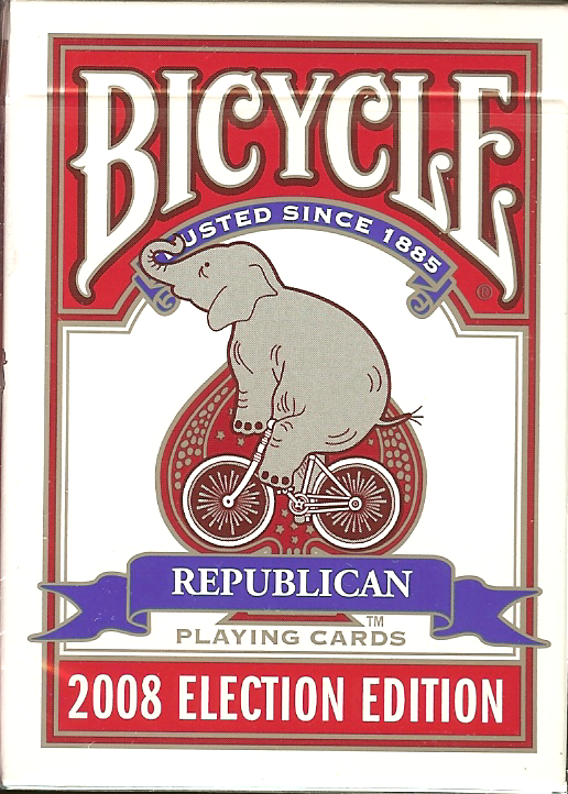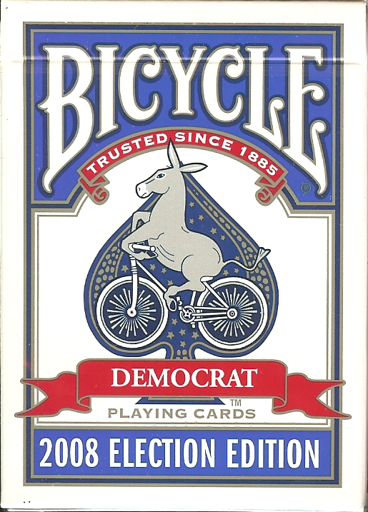 Bicycle Democratic deck (blue back), $3.99. Bicycle Republican deck (red back), $3.99. |